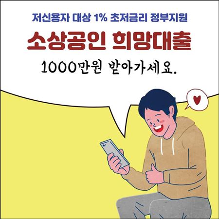 소상공인 희망대출은 온라인 소상공인정책자금 누리집을 통해 신청할 수 있는데요. 대출 금액은 연 1%의 저금리로 1인당 최대 1천만원씩 총 1조4천억원을 공급합니다. 신청하는 곳은 위 사이트를 참고하시기 바랍니다.